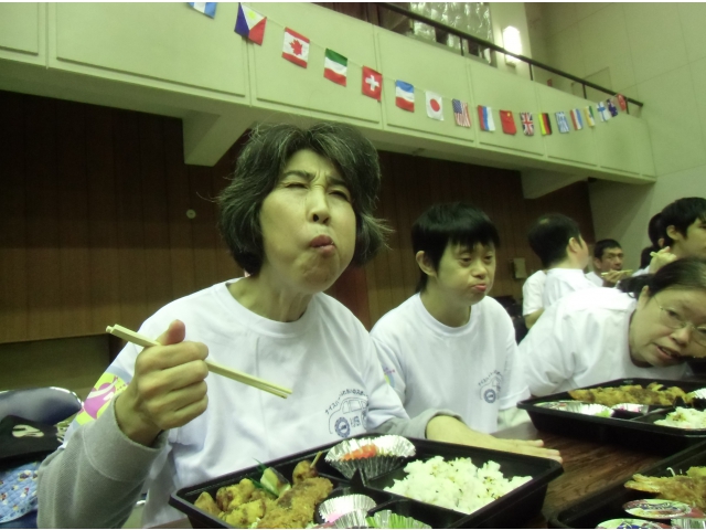 昼ごはんは大会から頂いたお弁当でしたが、写真の通り豪華なもので、味もとてもよかったです。普段は食事に時間がかかる方も、あっという間にたいらげてしまいました。来た甲斐が二倍にも三倍にもなりました。