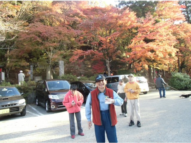 日に日に寒さが増してきて、紅葉の時期となりました。本日のドライブクラブは足助の香嵐渓まで紅葉を見に行くことに。山道をドライブしながら現地に到着。平日であるにも関わらず大勢の人がいました。売店で五平餅とたい焼き、ジュースを購入し綺麗な紅葉を見ながら食べ、いつもより美味しく感じる五平餅となりました。
