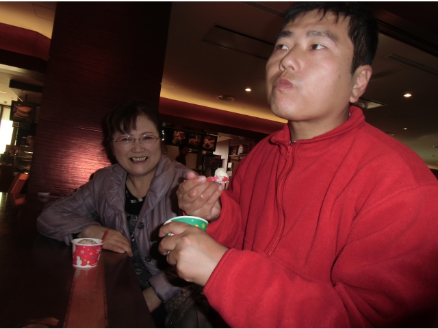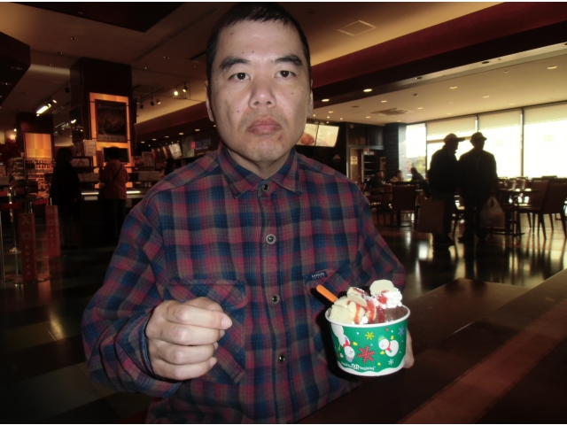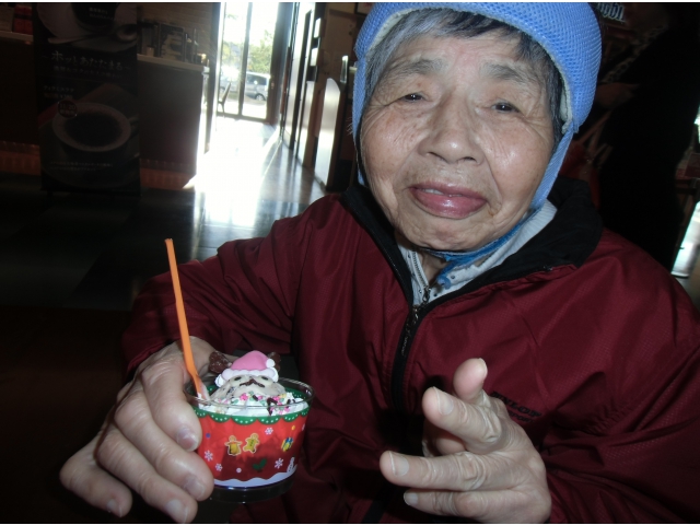 帰りの途中に「刈谷ハイウェイオアシス」に寄りました。11月にもなるとクリスマスな雰囲気になっており、アイスクリーム店のパフェを美味しそうにたべていました。