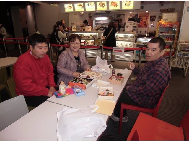 お昼ごはんは館内に売られていた駅弁を選んで食べました。最近の駅弁は15センチくらいのエビフライが入っていたりと豪華な造りでした。