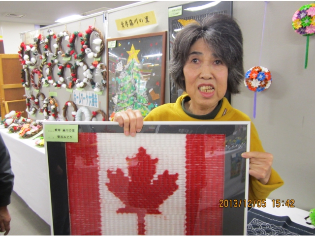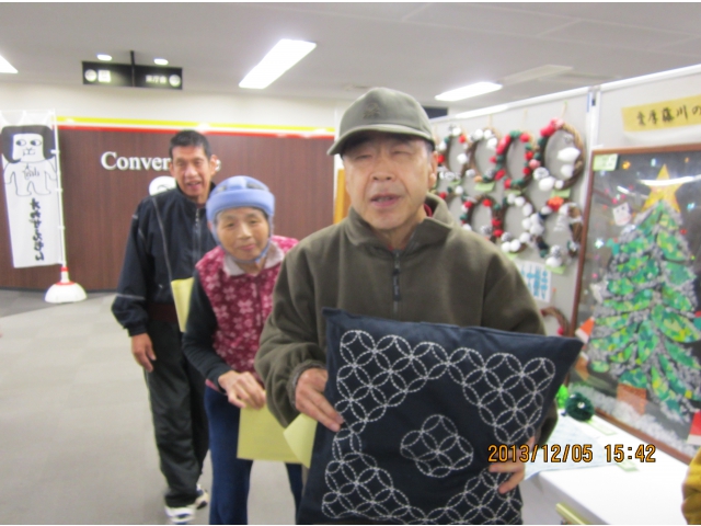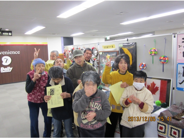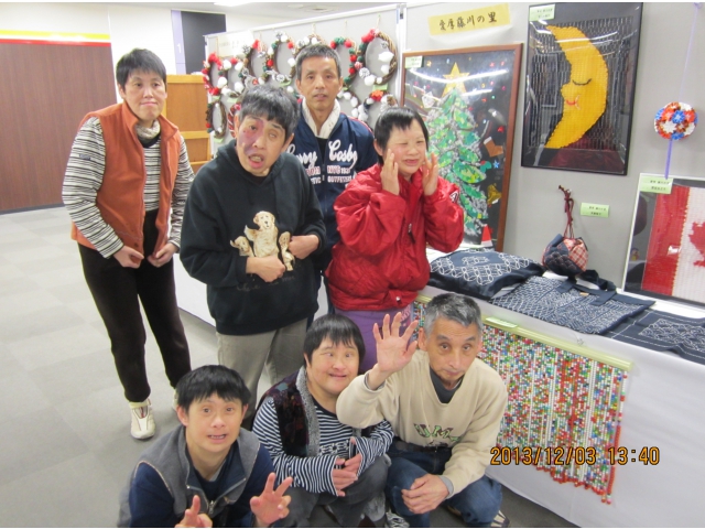12月5日(火)岡崎市市役所 西庁舎市民ロビーで行われた岡崎市障害者作品展に参加しました。貼り絵のクリスマスツリーやネット刺し、カラフルビーズのれん、刺し子など、たくさんの作品を出しました。会場に着くと、「わぁー私のあった!!」と嬉しそうな声。帰りには、来年は何を出そうかな?」と話しが盛り上がりました。 来年に向けて明日から頑張るぞ!!