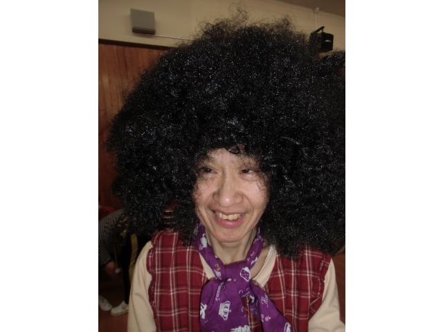 午前中は、光が丘の生徒さんに食堂で歌を披露して頂きました。昼食はとても豪華で目でも舌でも楽しめました。午後からは、利用者、職員共に仮装をしてオリジナルにアレンジした桃太郎の寸劇と、この日の為に練習してきた大好きな踊りで盛り上がりました。おやつタイムはショートケーキにコーヒーを食べて大満足の1日になりました。