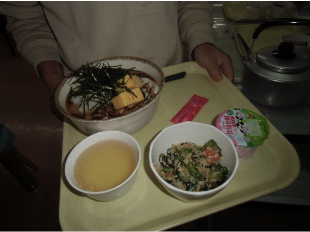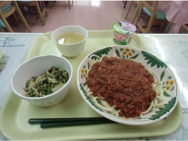 毎月第一・第三水曜日は、選択食を実施しています。ご自分で好きなものを選べられるという事で、皆さんとても楽しみにされています。 ~12月18日(水)は麺メニューの選択です~ A ミートスパゲティ…お肉、野菜がたっぷり!! B おろしきしめん…大根おろしでさっぱりとどうぞ! 利用者様にはきしめんのほうが若干人気は高いようです。