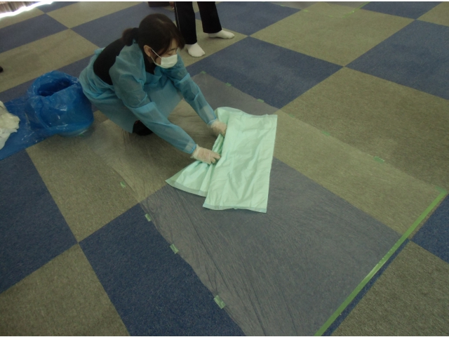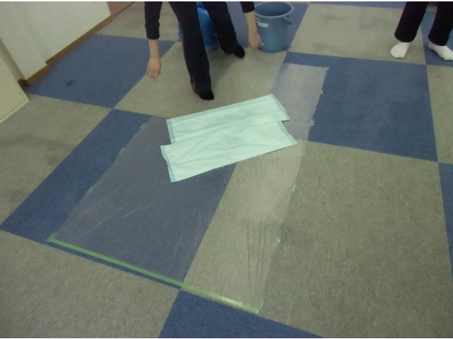 講師をお招きし、ノロの嘔吐物処理法を学びました。 嘔吐物に似せたものをばらまき、それをどう処理し、どこを触ると不潔かどう扱うと不潔にならず処理できるかを学びました。 今後の現場に生かしていきたいです。