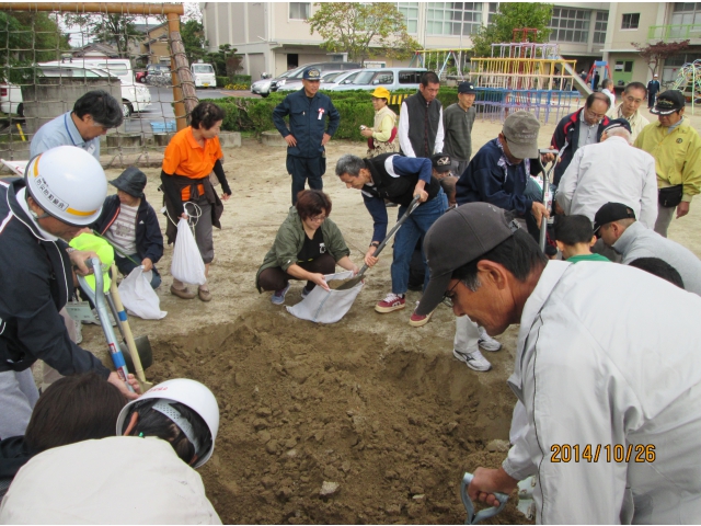 10月26日、日曜日、藤川西部町内会の防災訓練がありました。藤川の里も、利用者と職員13名で、徒歩にて避難場所である小学校にいきました。訓練では「土のう作り」や「応急担架づくり」、そして炊き出しを振る舞うなど。 こういった活動を継続していくことが、小さいながらも地域の方々に、防災意識を高めていく良い機会になると改めて感じました。