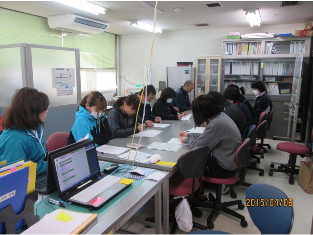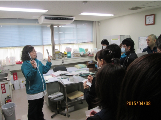 初日は、緊張した面持ちで望んだ職員も、日を増すごとに交流を深め、仲間意識も芽生えてきました。 そんな中、知的障害施設での「緊急時の対応」について、看護主任から説明してもらいました。 施設では「てんかん発作」「利用者さんの無断外出」「感染症者への対応」など、様々な事例に直面します。 これからも勉強いき、お互い職員同士で成長していきたいです。
