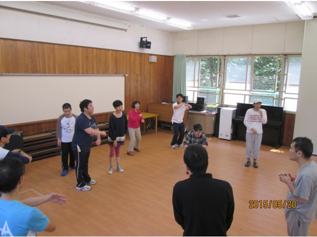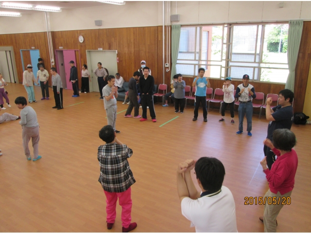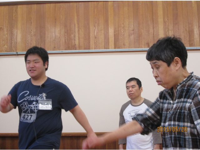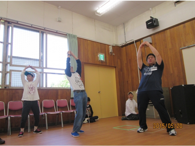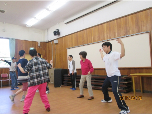 学生2人の一生懸命な踊りで訓練棟内は大盛り上がり。
