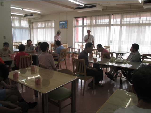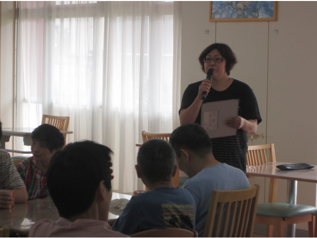 8月の利用者懇談会を行いました。所長から暑い日が続いていますがみなさん体調を崩さないように気を付けてくださいと挨拶がありました。