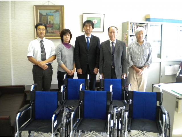 10月29日(木) 毎月、藤川の里に来ていただいている理美容「たんぽぽ」様より、車イス5台の寄贈がありました。 藤川の里の利用者も平均年齢が52才と高齢になってきており、車イスを利用する人も増えてきました。