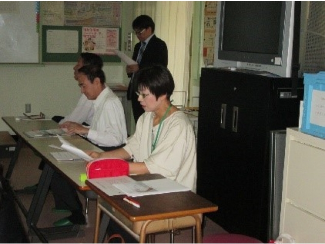 (1)支援者、(2)要支援者、(3)支援者の観察者、(4)要支援者の観察者と役割分担をし、支援者は、日本語ではない言葉と肯定・否定のそれぞれの意味の言葉のみを使用し、要支援者に行ってほしい行動を伝えます。段階的にジェスチャーを交え最後は、日本語を一語交え、要支援者に伝えていきます。、要支援者は、言葉や表情などを頼りに行動に移し、観察者はそれぞれの表情や口調などを観察することを体験し、感じたことなど意見を出し合うグループワーク・発表を行っていただきました。
