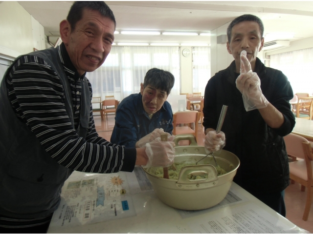 11月10日(日)、「家族交流会・焼き芋会」を開催しました。朝1番から、石焼き芋を焼く機械でお芋を焼きました。辺りには良い香りが漂いました。午後からは、クッキングクラブのメンバーの皆さんと共に、柔らかいお芋が良い方のため、焼き芋で甘いマッシュポテトを作りました。家族交流会には沢山のご家族の方が参加していただきありがとうございました。焼き芋会にてご家族の方、職員と共に皆様が美味しいと舌鼓を打たれていました。楽しい時間をありがとうございます。