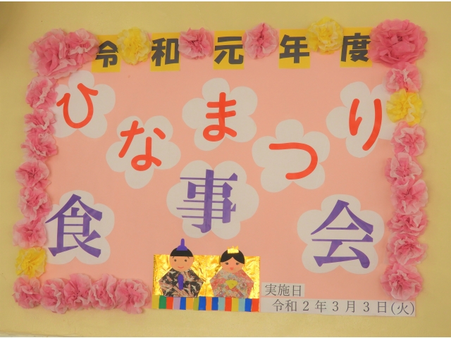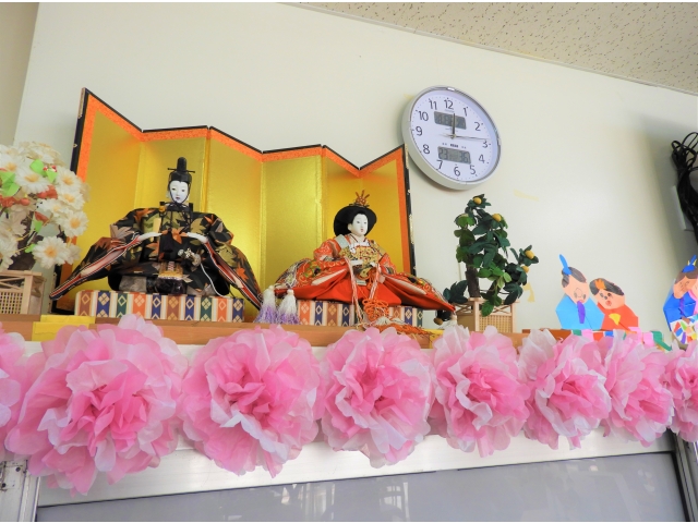 今日はたくさんの飾りつけをした食堂にて、昼食時ひな祭り会を行ないました!!