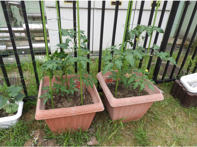 中庭で育てていたミニトマトですが、ちょっと前まではこんな感じでした。まだまだこれからかなと思っているうちに、どんどん茎は太くなり、ミニトマトの赤ちゃんらしき物も出てきました。