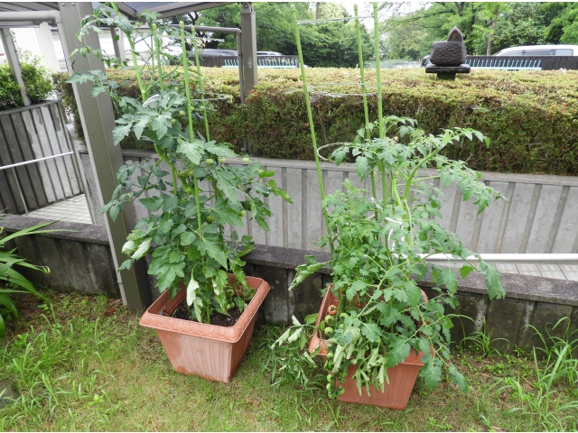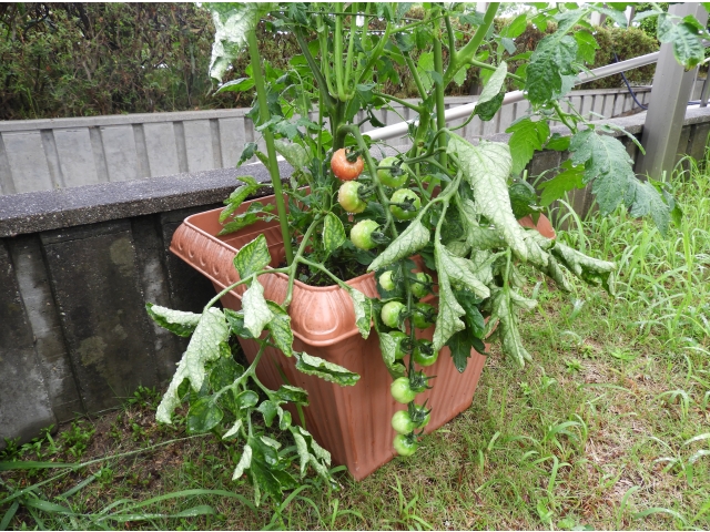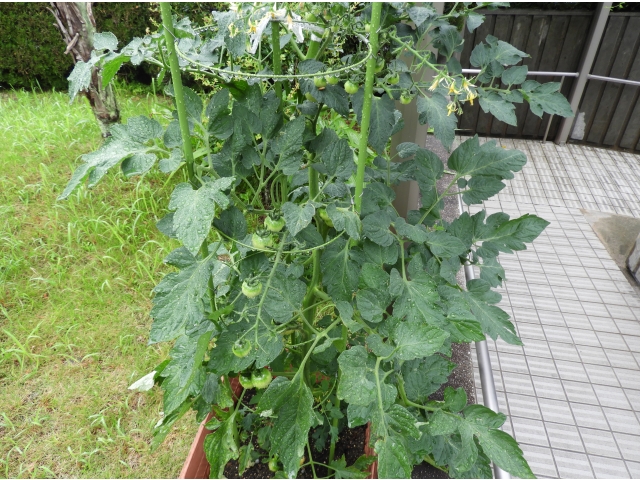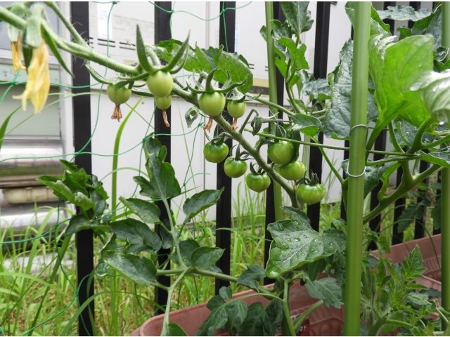順調すぎるぐらいに大きな実をつけているミニトマトですが、『ミニ』という控えめな名前が付いているくせに、自己主張が強くて全然控えめではありません…。