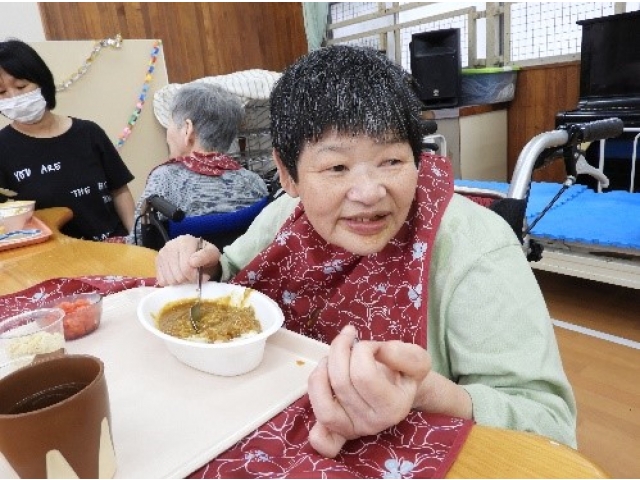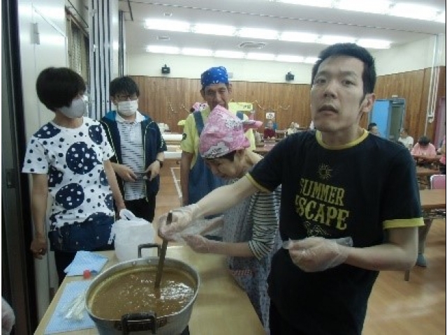 新型コロナウイルスの感染症対策が続く中、施設内で利用者様が気分を変えて楽しめる行事として、毎月行っている「クッキングクラブ」と「春の食事会」を合わせて「お楽しみ会」を開催しました。クッキングクラブでは、本日のメインメニュー・カレーのルー作りをクッキングクラブ選抜メンバーで行ないました。見学の利用者様がカレーのイイ匂いに待ちきれず、飛び入り参加する場面も。