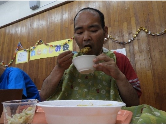 訓練棟での食事会が始まり、普段とは違った場所で食事をすることで気分転換にもなり、楽しく美味しい食事をすることができました。みなさんカレーとジュースのおかわりでおなかいっぱい!