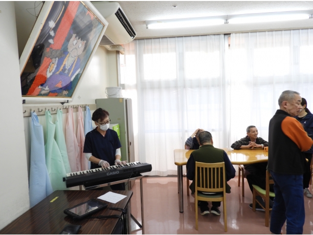 今日は、看護師さんにご協力いただいて、特別に生演奏で『うれしいひな祭り』の歌を皆さんで一緒に歌うことが出来ました。