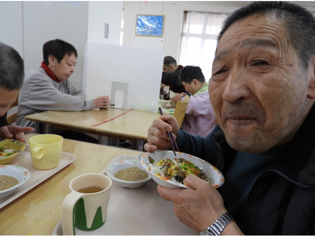 今年もひな祭りがやってきました。利用者様にも飾りの制作をお手伝いいただいて、食堂に、色とりどりのひな人形を飾り、美味しい料理を楽しむ素敵な日。