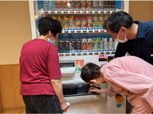 施設見学もさせていただき、苑内の自販機で、飲みたいジュースを購入して、一休み😍