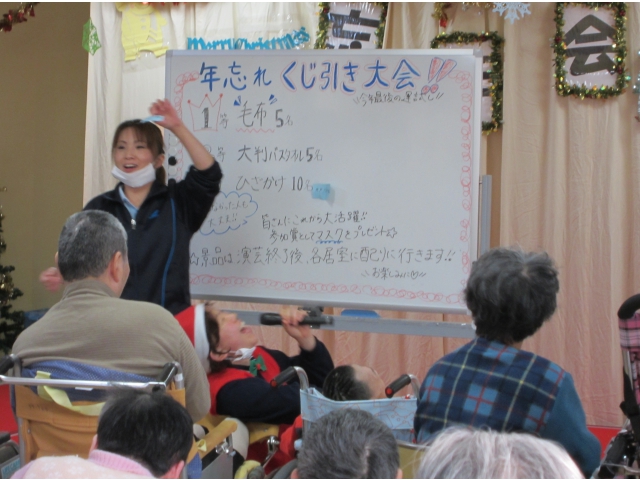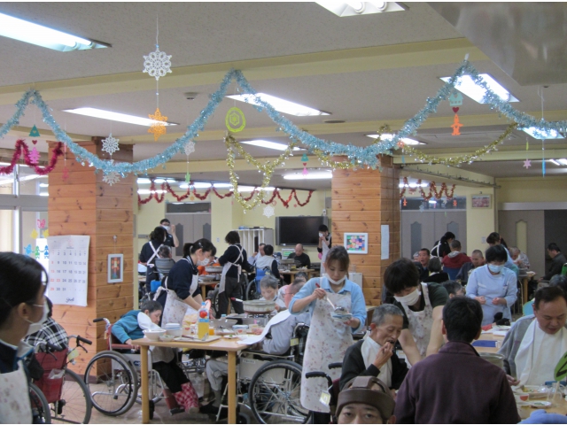 利用者様が無事に一年を過ごし、新年を迎えるにあたり、職員一同で「お・も・て・な・し」をしながら楽しいひと時を過ごしました。