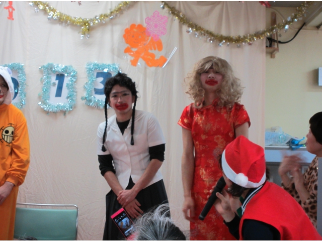 男性職員の公開メイクアップ「大変身!劇的ビフォーアフター」や新規職員によるキレキレダンス、金爆の「女々しくて」を利用者様に披露し、大盛況で終えることができました。