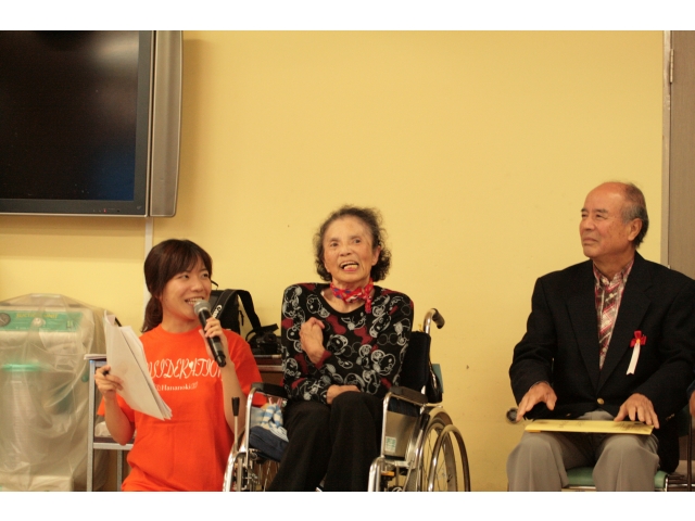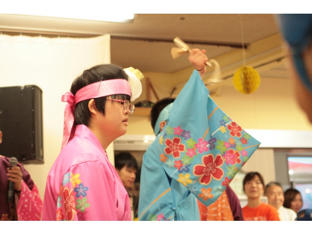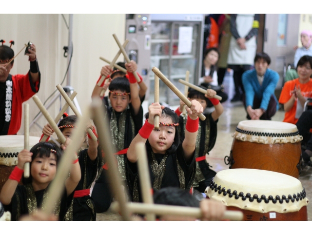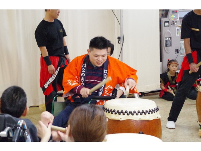 アトラクションのトリを務めたのは、“和太鼓 響”さんの和太鼓演奏。和太鼓の音色とともに胸が高鳴り、キレのある揃った動きに目が釘づけになりました。最後の和太鼓体験に参加した利用者様からは「楽しかった。すごかったよ」といった声も聞かれ、こちらも嬉しくなりました。