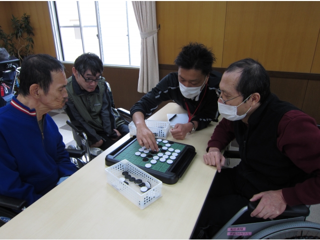 毎月、第2・4の月曜日と木曜日に開催されている「オセロの会」日増しに参加者が増えています!対戦するのが難しい人でも大丈夫!オセロ大会の様子等をインターネットの動画を見たりして楽しんでいます。