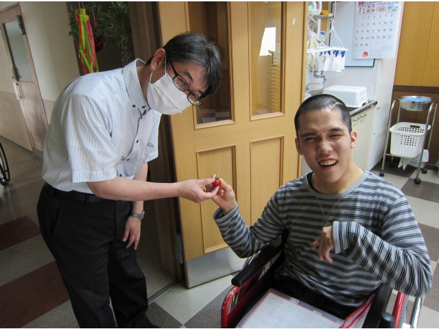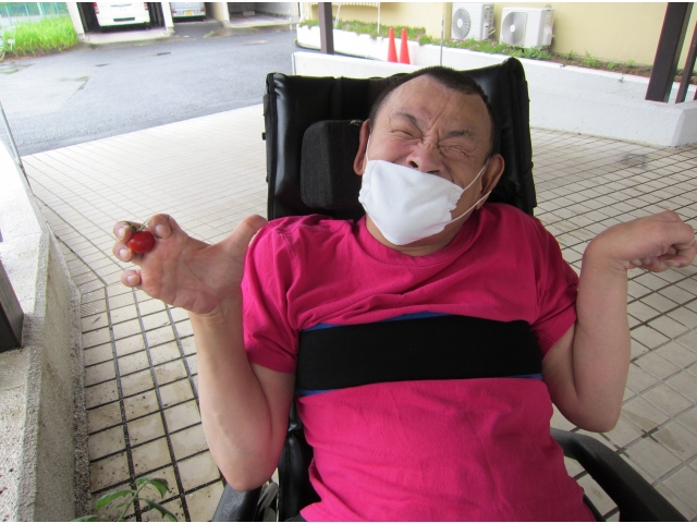 初物は、日頃から水やり等のお世話をしてくれているパートさんに・・・ その後は、所長を始め職員におすそ分けしています!
