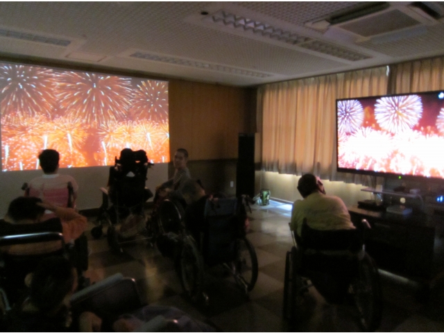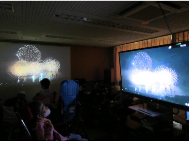 花火と音楽のコラボレーションをしている全国各地の花火大会の動画をプロジェクターとテレビ、自慢のスピーカーを駆使し、花火会場にいるかのような臨場感が体感できるよう工夫してみました(^_-)-☆