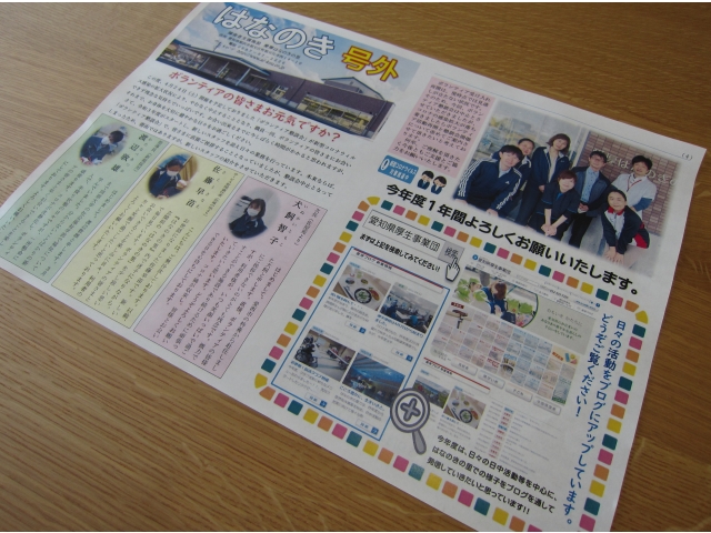 今回、懇談会が中止になったことで、懇談会開催の際に新しいスタッフの紹介等を予定していましたが、できなくなってしまったので、急遽、ボランティアさんに向けて広報誌『はなのき』の号外を作成してみました!!
