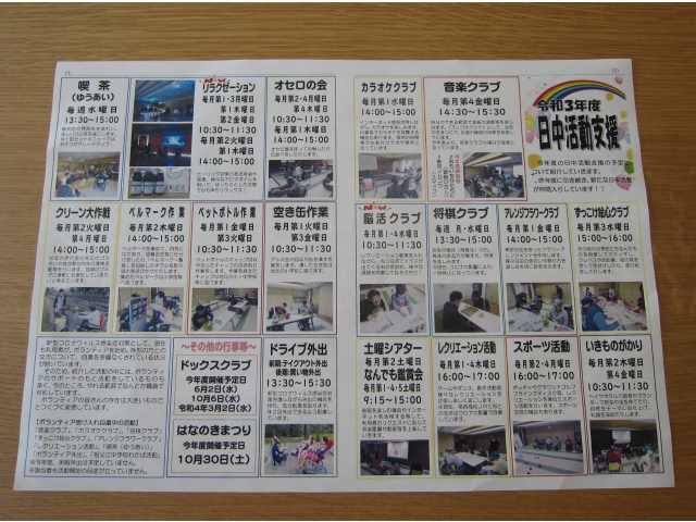 懇談会に出席予定だった新メンバーの挨拶や、現在はなのきの里で取り組んでいる日中活動を紹介しています。