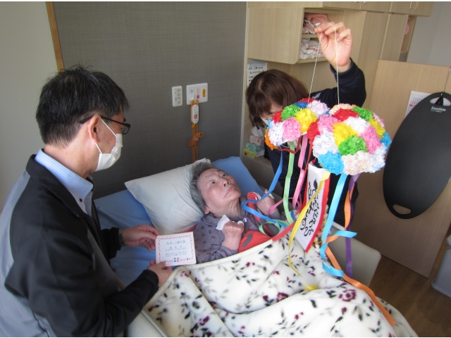 利用者さんは、満面の笑顔で応えてくれ、お祝いをした職員もなんだか嬉しくなりました~(≧▽≦)
