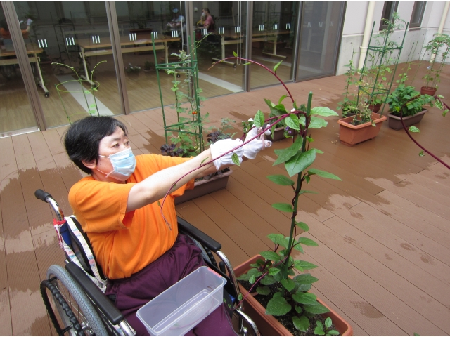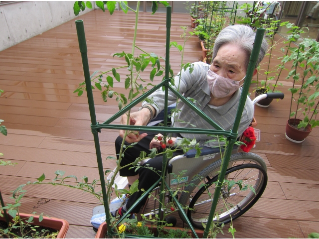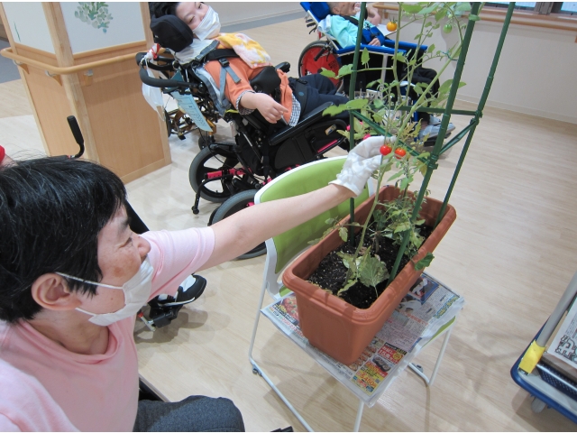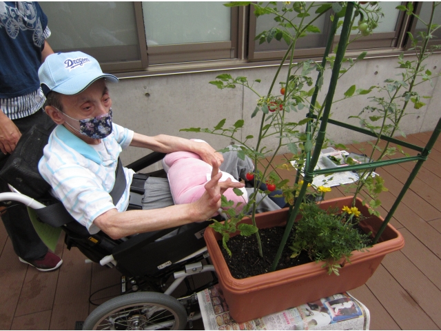 特にミニトマトは、トマトが実り緑色から赤色への変化を楽しみ、赤く熟すと、利用者さんからは「そろそろ収穫しないと…」と急かされることも…(;^ω^)
