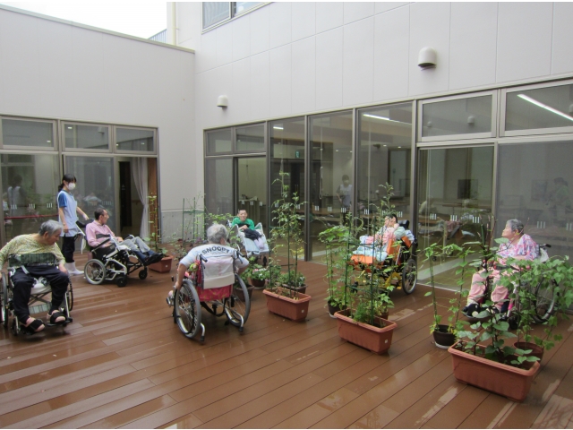 中庭で楽しく家庭菜園…。来年もチャレンジしたいと思います!!