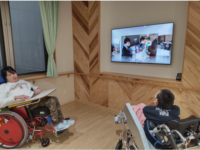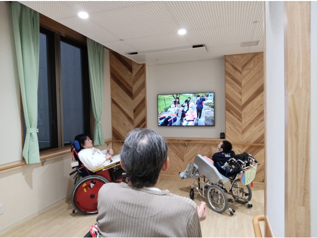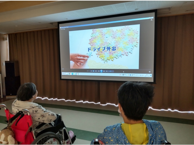 みんなの笑顔の写真を集めて廊下に掲示するという提案だったのですが、準備する期間も短かったので、フォトムービーを作成してデイコーナーや集会室のスクリーンで上映することにしました。