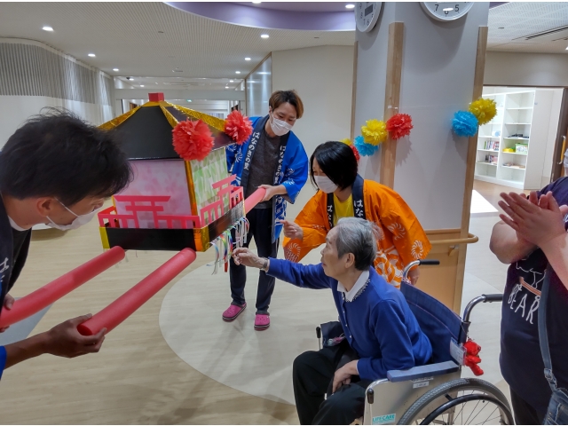 お神輿には、カラフルなリボン(くじ)がついており、豪華景品を狙って、みなさん思い思いにくじを引き、一喜一憂していました~( *´艸`)