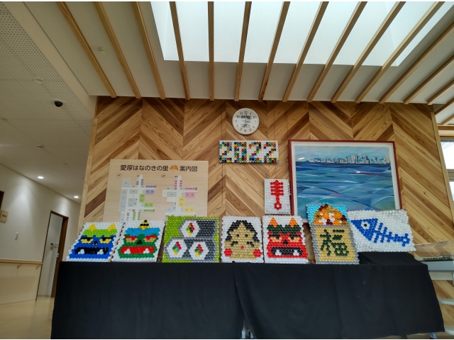 現在は、ご家族を始め外部の方の出入りについて自粛をしていますが、はなのきの里にお越しいただいた際、玄関ロビーにある作品を見て、お褒めの言葉を頂きます。