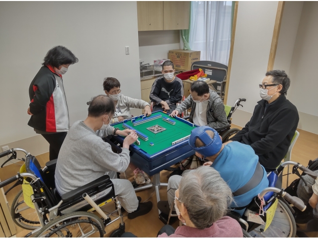 麻雀は、脳トレや指先のリハビリになることもあって、不定期での開催となっていますが、参加を呼び掛けると、たくさんの利用者さんが集まってくれました。