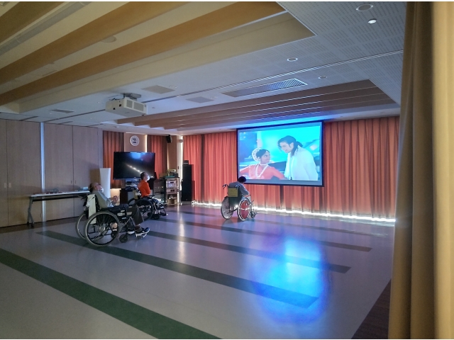 日中活動紹介「はなのきシアター」 昨年度まで「土曜シアター」として開催していた活動が今年度は月曜日にお引越しして、名称も「はなのきシアター」となりました。 初回上映作品は「キング・オブ・ポップ」マイケルジャクソンのショート・フィルム。 「スリラー」、「BEAT IT」、「BLACK OR WHITE」等、一度は聴いたことのある曲を映像と共に楽しみました。