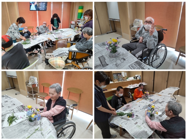 色とりどりのお花と嬉しそうな横顔~♪の利用者さん…。心もきっとストレッチすることが出来たでしょう。