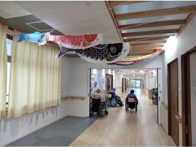 そして、昨年は屋外で飾っていた鯉のぼりを今年は2階フロアの廊下に飾ってみました!!