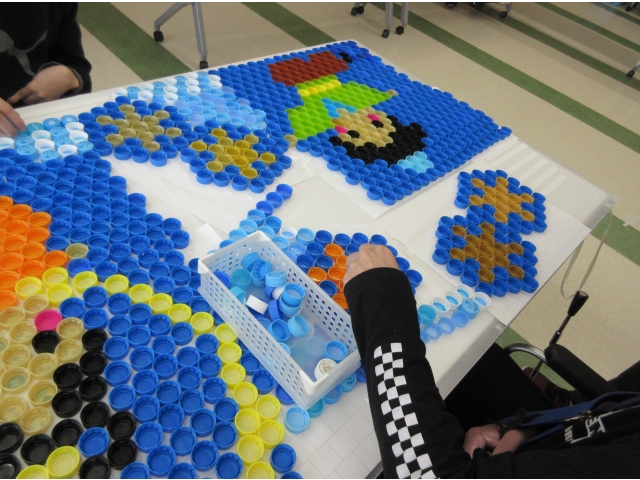 はなのきペットボトルキャップアート、今回のテーマは「七夕」