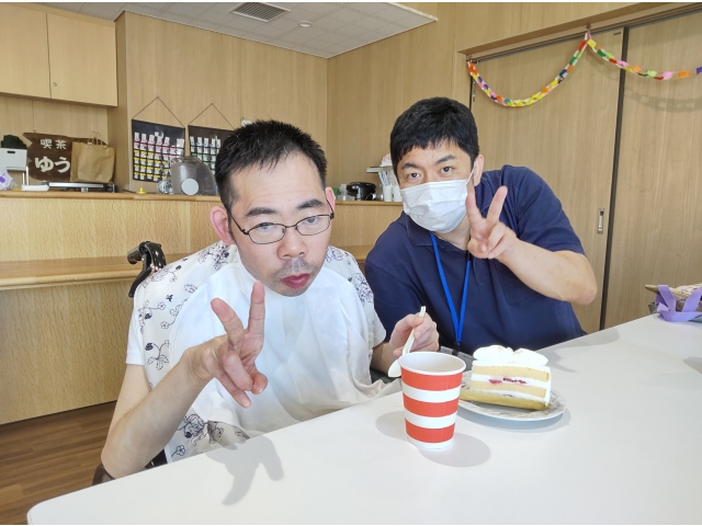 今回のドライブ外出は、ケーキ屋さんへGO!! 町内にある洋菓子店に出掛けました。 今回のお目当ては『いちごのショートケーキ』 ケーキを購入し、隣接している商店で飲み物を買って、さぁ、おやつタイム💛 みなさん、あっという間にケーキをペロリ!ごちそうさまでした~!!