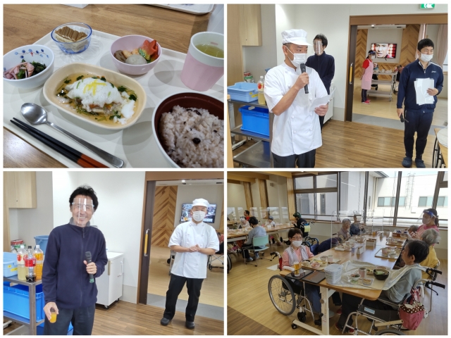 昼食時に誕生会を開催しました。 誕生会の献立は、担当の調理師さんが考えています。 利用者の食卓に腕によりをかけた料理が並びました。 今回の誕生会メニューは… 『赤飯』、『たらのかぶら蒸し』、『含め煮』、『春菊のサラダ』、『マロンケーキ』 おいしい料理に舌鼓を打ちながら、お誕生者をお祝いしました~( *´艸`)