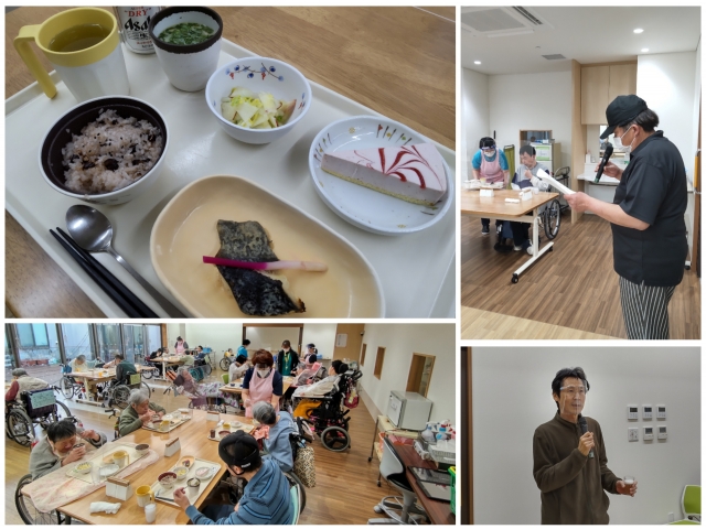 調理師さんより本日の献立の紹介をしていただいた後は、所長さんが乾杯の音頭をとって食事がスタート。