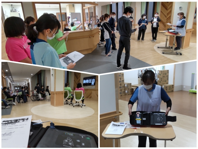 災害時や緊急時等の救命に関する研修として、看護師によるAED講習会を実施しました。
