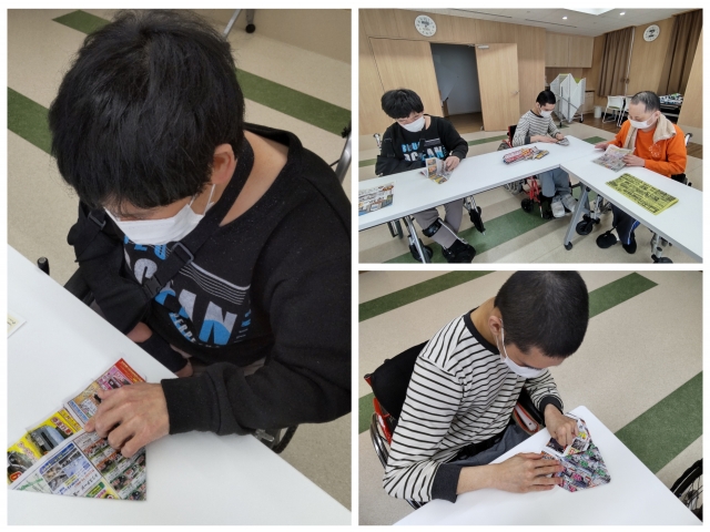 この他に、チラシでゴミ箱の作成もチャレンジしました~。