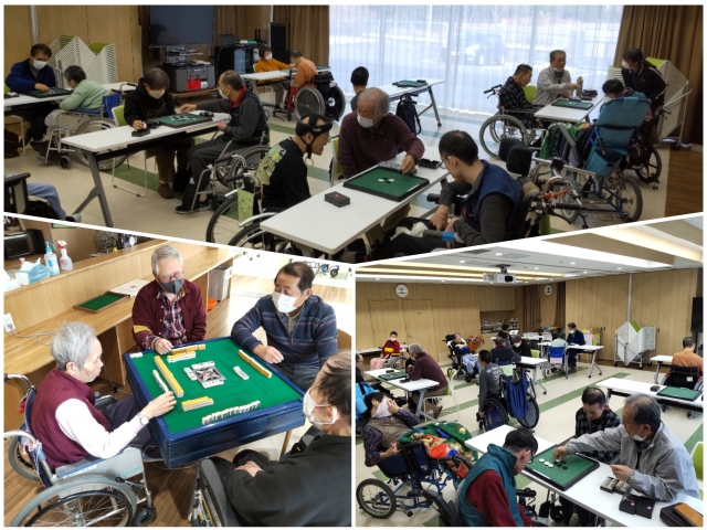 日中活動で人気の「オセロ」。 祖父江地区の民生委員さんは活動参加に慣れたもので、オセロの対戦をしたり利用者同士の対戦のサポートをしたりと大活躍。 まだ少数派ですが麻雀も楽しんでやってみえます。