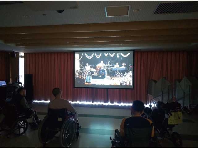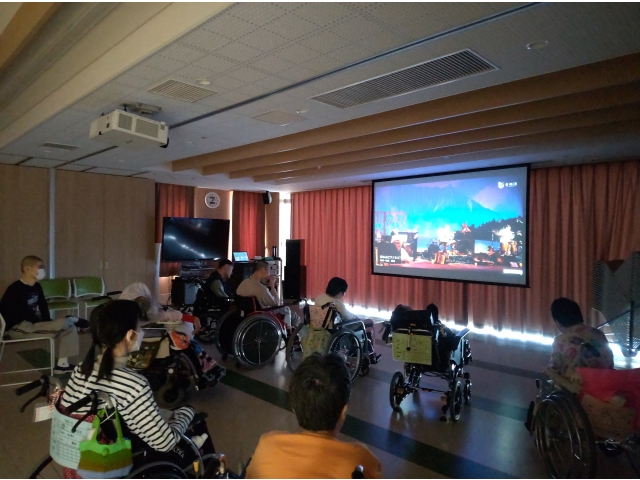 上映会には、多くの利用者さんが集まり、素敵な音楽と語りを楽しみました。