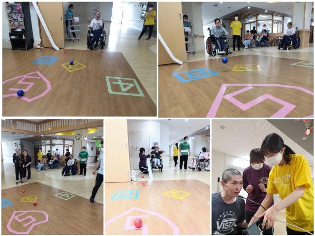 午前の部(前半戦)は、「転がしボッチャ」と「ビンゴ」を行いました。